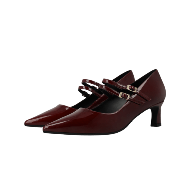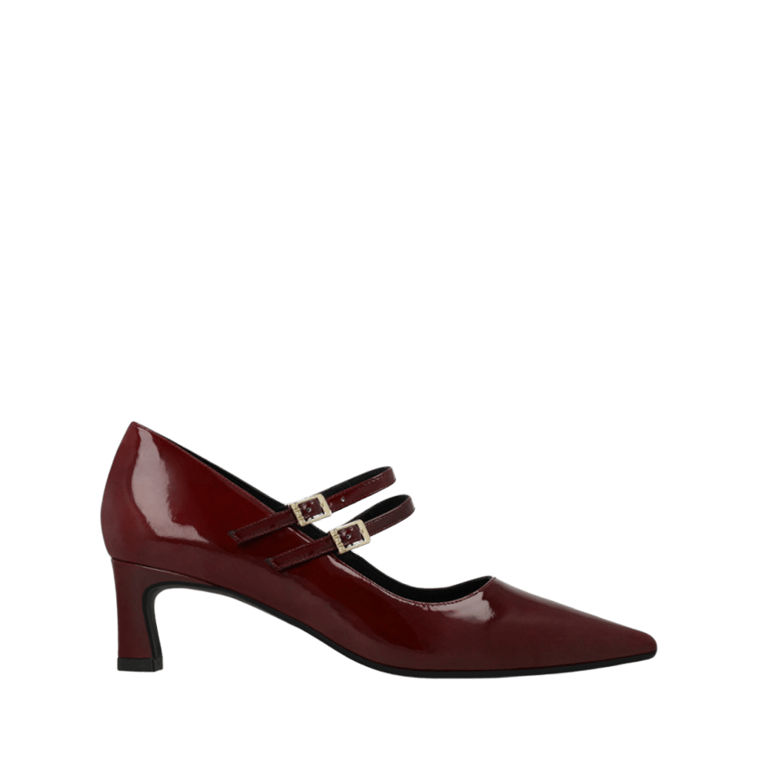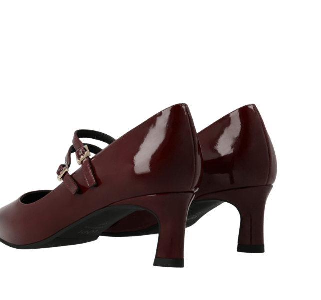 Una versión moderna de un clásico que nunca falla. Su color burdeos intenso y su acabado brillante hacen que sea el centro de todas las miradas y le den un toque especial a cualquier outfit. Se adaptan a las tallas del 38 al 40.